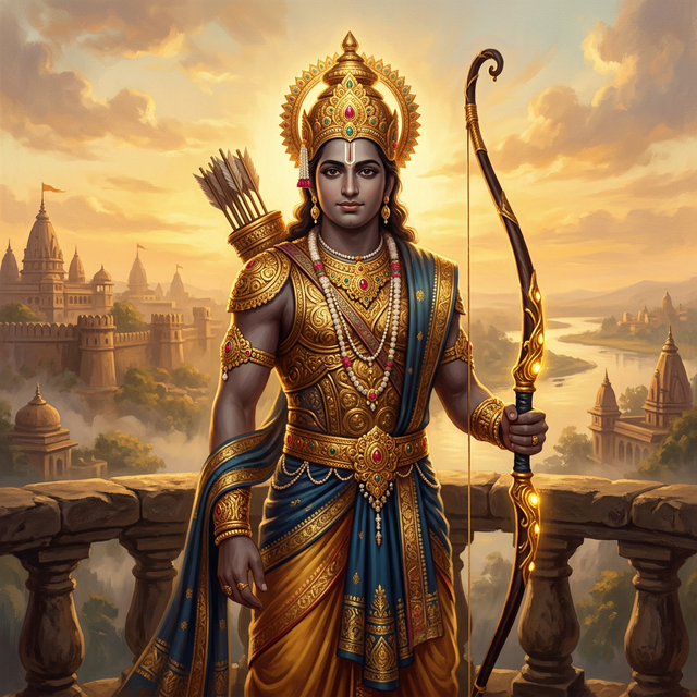 Rama's reign (Rama Rajya), the abandonment of Sita, the birth of Lava and Kusha, and the final departure of the divine souls.
